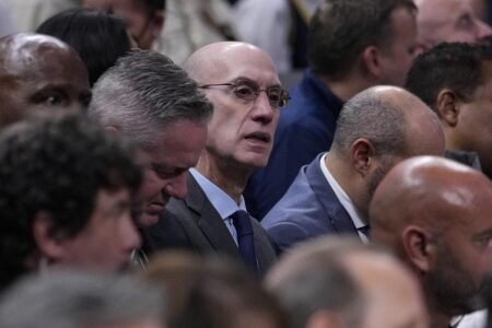 LAS VEGAS (AP) — As Commissioner Adam Silver prepared to hand LeBron James the MVP trophy of the ina...