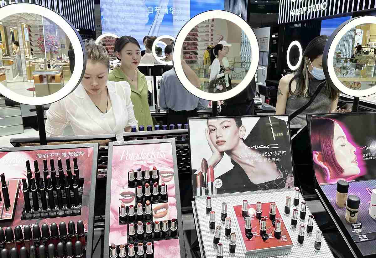 The cosmetics section of a commercial facility in Beijing
