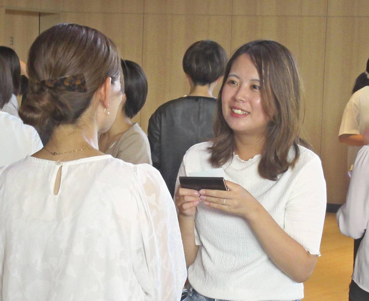 Naomi Ida, a 33-year-old homemaker from Yamaguchi, who was cheerfully practicing exchanging business cards, explained her reason for joining the seminar, “I now have more time on my hands in regard to childcare, and I want to be connected with society again.”