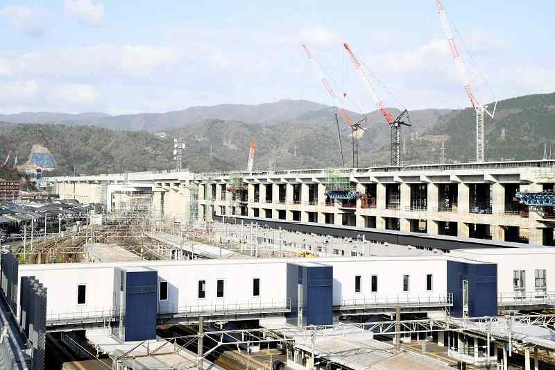 Construction of the Hokuriku Shinkansen Line is underway near JR Tsuruga Station in Tsuruga, Fukui Prefecture, in April.