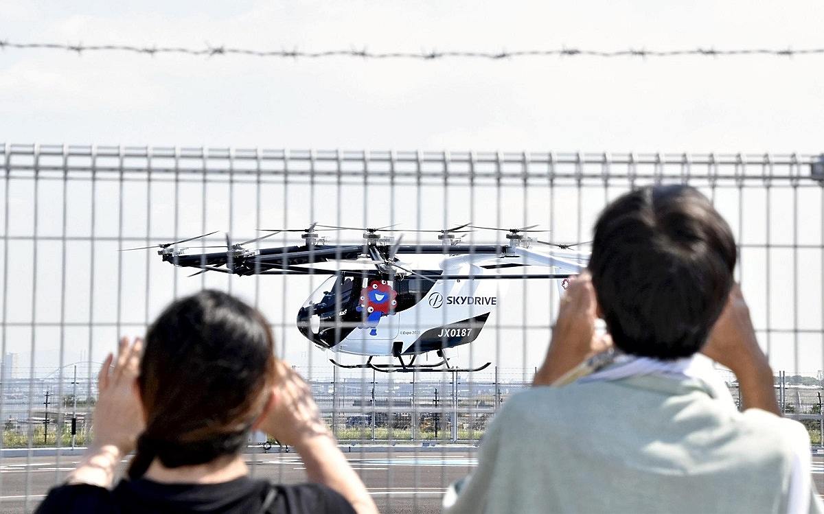 OSAKA (Jiji Press) — The startup SkyDrive Inc. performed its first demonstration flight of a flying car for visitors at the World Exposition in Osaka City on Thursday.