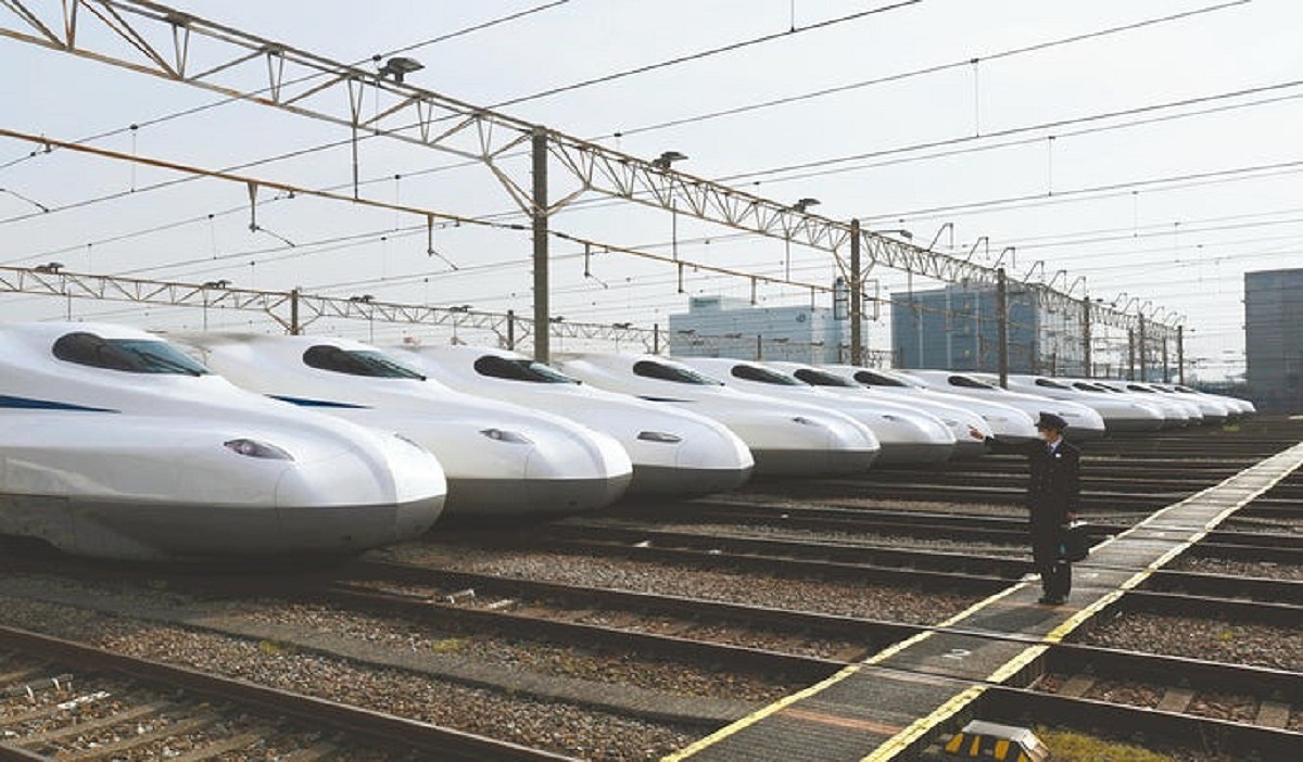 Shinkansen bullet trains at JR Tokai’s Oi Shinkansen Depot in Shinagawa Ward, Tokyo
