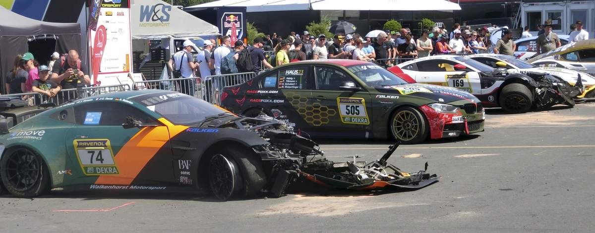 A vehicle that crashed and was eliminated from the final race.
