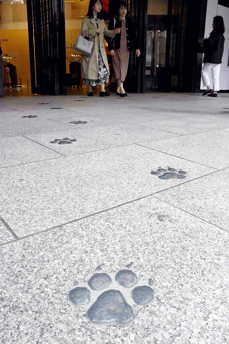 Images of the lion’s footprints, which are seen in the video, have also been placed in locations including on the floors of both stores’ entrances, attracting people’s attention. The footprints will remain in place through Wednesday.