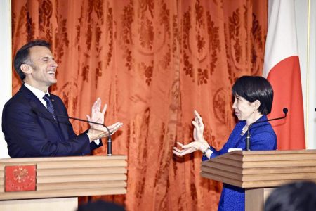 Japan’s Takaichi, France’s Macron Strike ‘Dragon Ball’ Pose