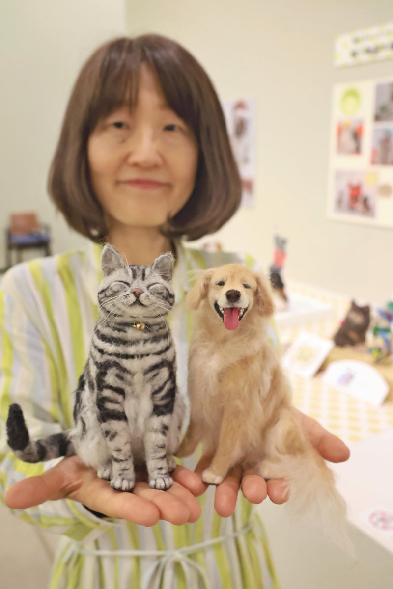 About 500 pieces — mainly cats and dogs — created with wool felt are on display.
