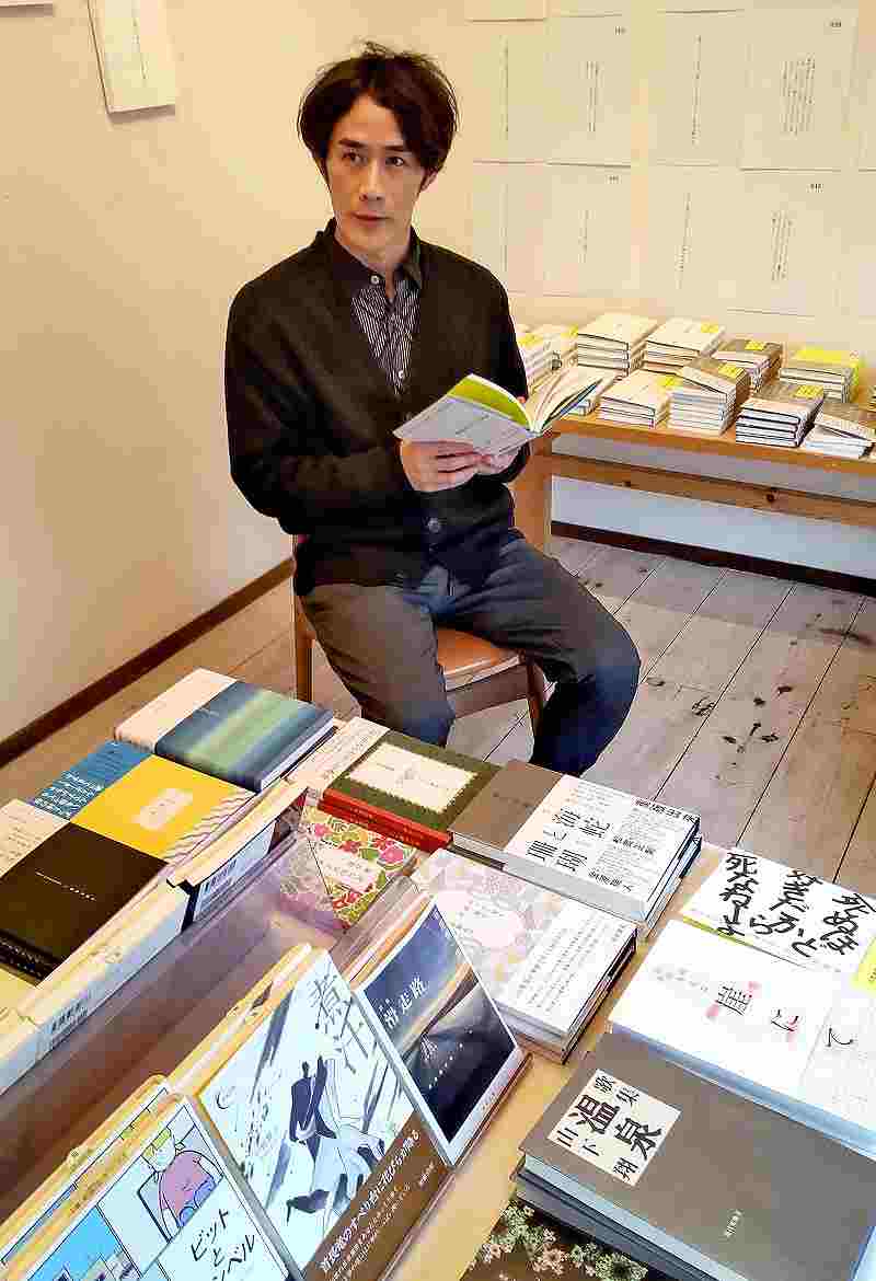 Tanka poet Tatsuya Kinoshita is seen at bookstore Title in Tokyo’s Ogikubo district.