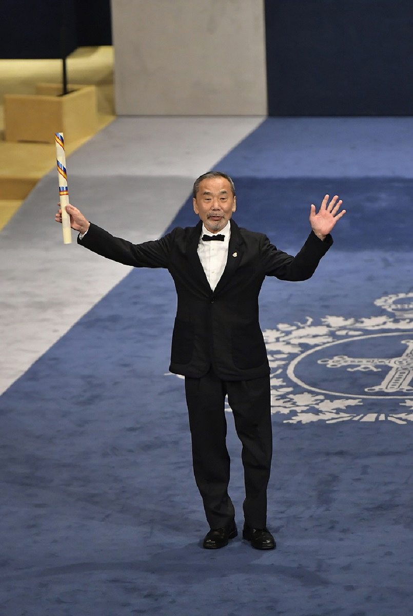 Author Haruki Murakami reacts after receiving the Princess of Asturias Award for Literature during the awards ceremony in Oviedo, northern Spain, on Friday.