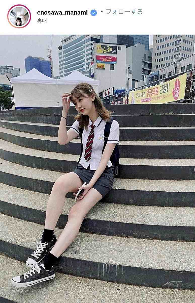 Manami Enosawa wears a South Korean school uniform in this photo posted on her Instagram account.