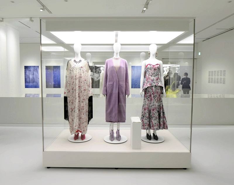 Mame Kurogouchi designs are on display in the austere white galleries of the Nagano Prefectural Art Museum in Nagano.