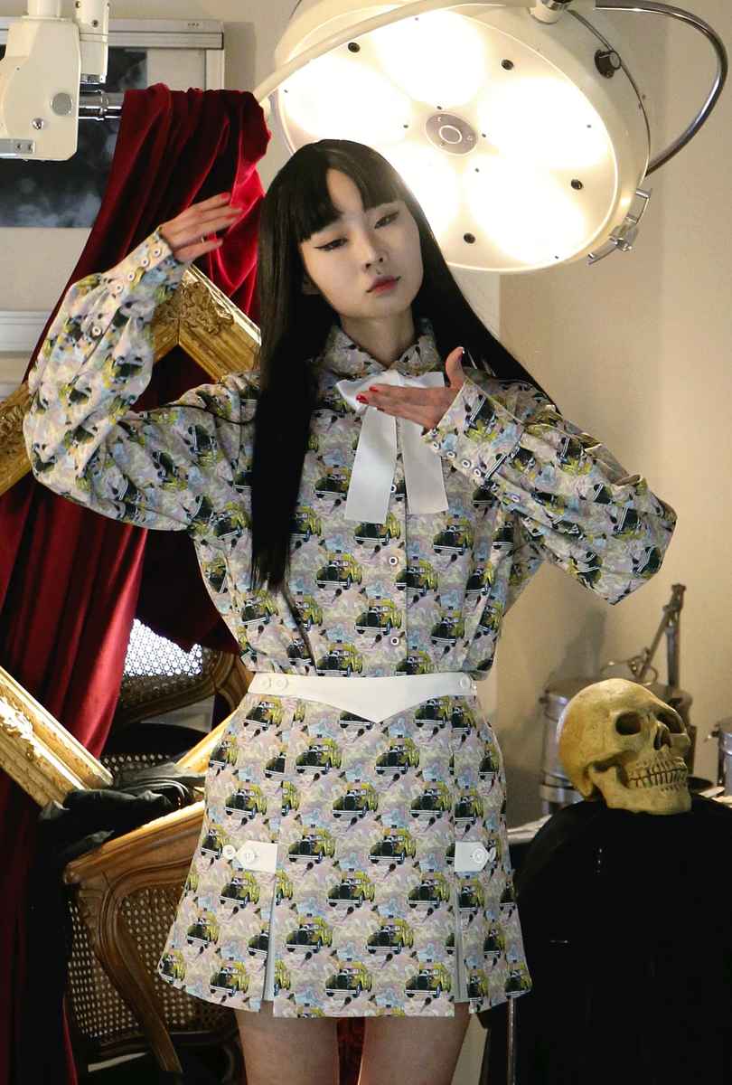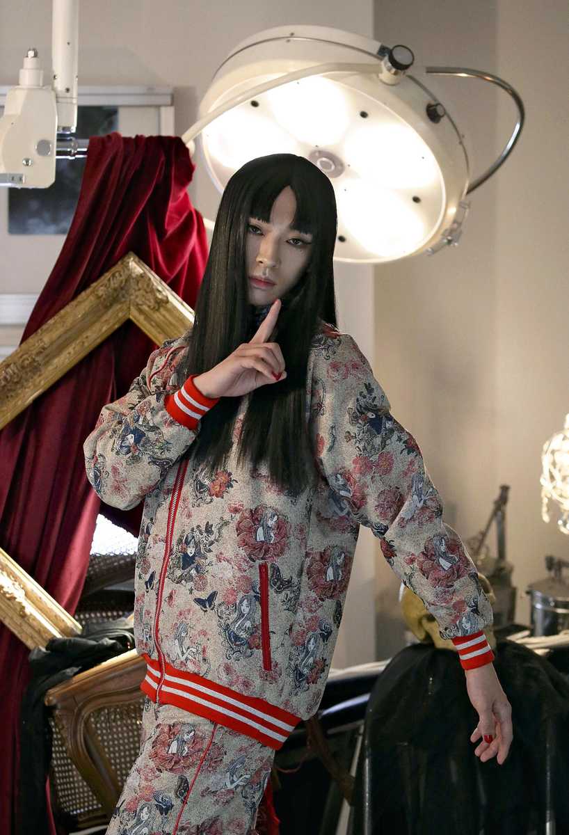 At the show, the models walked the runway dressed as protagonist Tomie, expressing how she keeps regenerating after death. With eerie music playing, the venue was decorated with red and black threads to represent blood and hair, creating a spooky atmosphere. The models, with Tomie’s characteristic straight black hair, narrow eyes and mole, wore garments representing blood, such as red dresses. All the new clothes are on sale.