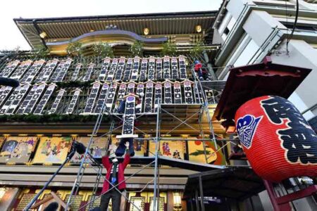 Auspicious signs displayed in Kyoto ahead of annual kabuki play
