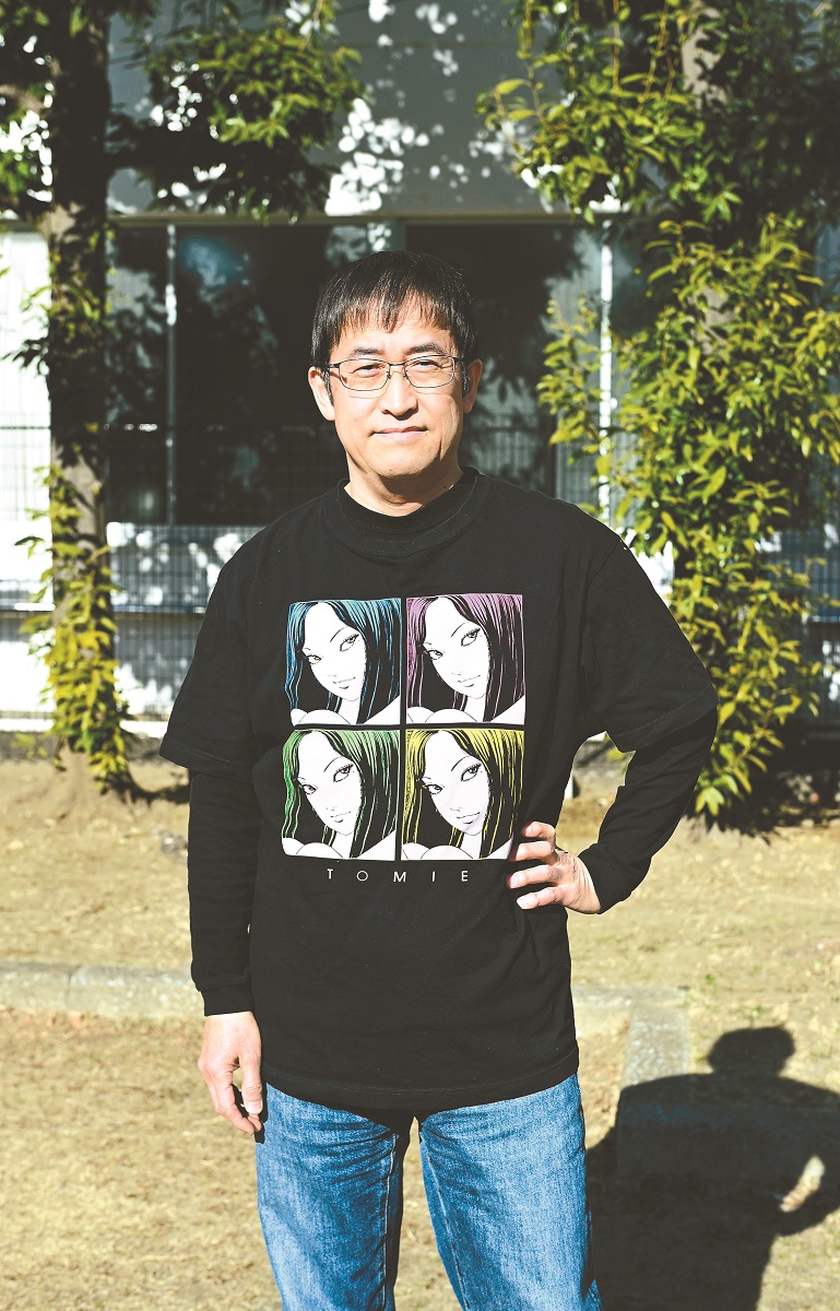 In recent years, he has also collaborated with the apparel industry, and a growing number of his fans don clothes featuring characters who sprang from his imagination. On the day I interviewed him, I brought my own T-shirt printed with illustrations of “Tomie,” his debut work, one of his most famous manga. He kindly accepted my outrageous request that he wear the T-shirt.