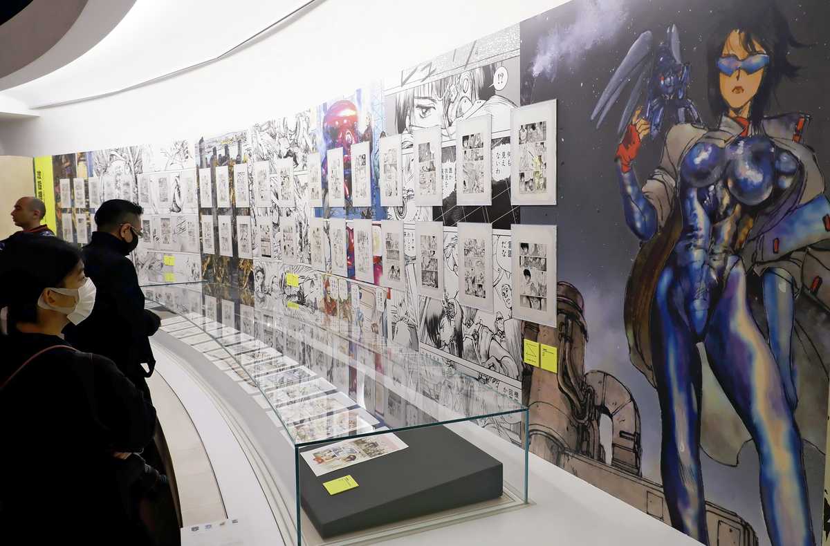 About 440 items are on display, including many original manga drawings for his works, including from his debut work “Appleseed.” Drawing tools and materials along with some of his favorite books are being exhibited.