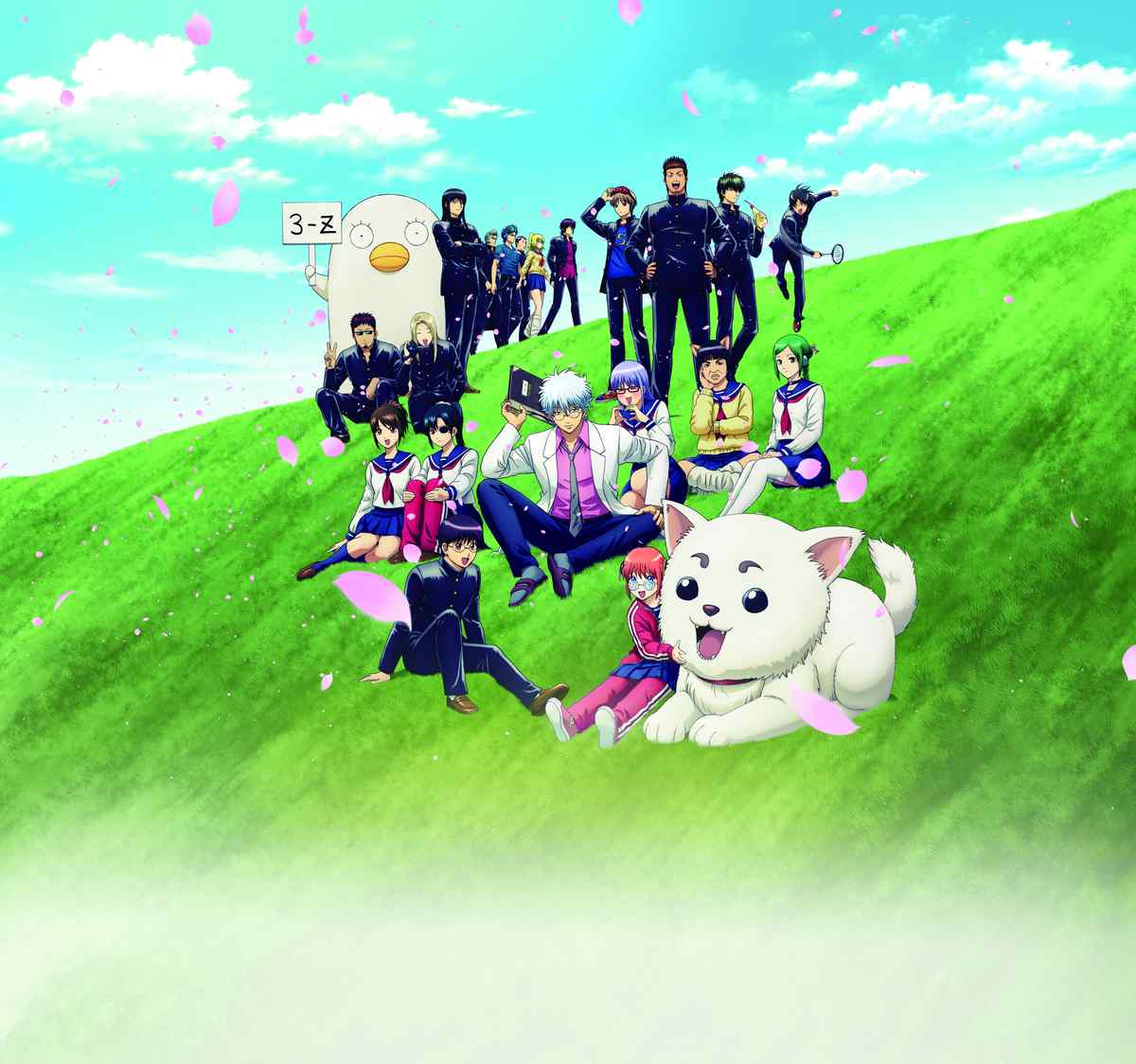 Familiar characters from “Gintama” appear as students at Gintama High School. The story depicts the everyday school life of the teacher and his students.