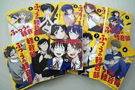All the volumes of “Futsu no Keionbu” (“Girl Meets Rock!”) that have been published so far. The latest, volume 10, was released on March 4.