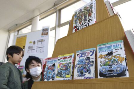The Yomiuri ShimbunA special section dedicated to Akira Toriyama is seen at the municipal library in...