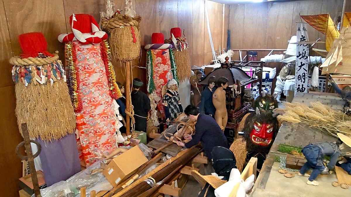 Namahage masks, farm equipment, stuffed animals and the like fill shelves at the Akita Prefectural Museum repositories, with some of the collections, artwork and artifacts pushing the storage to its limit.