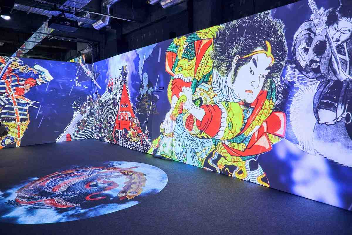 “Ukiyoe Immersive Art Exhibition,” held at Warehouse Terrada in Shinagawa Ward, features works based on more than 300 ukiyo-e by renowned artists such as Katsushika Hokusai.