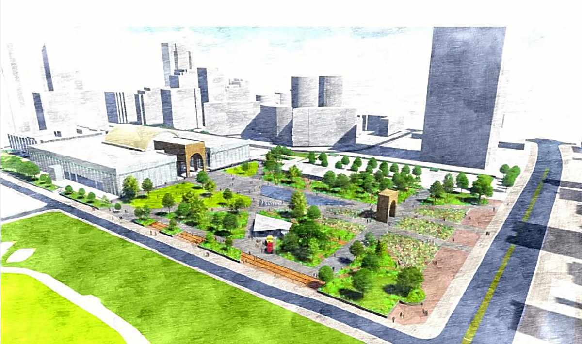 According to city officials, a plan is in the works to build a gate and monument on the ground level to express the founding principle of the new museum, using as reference the Louvre Museum in France, which has a huge glass pyramid leading to an underground entrance.