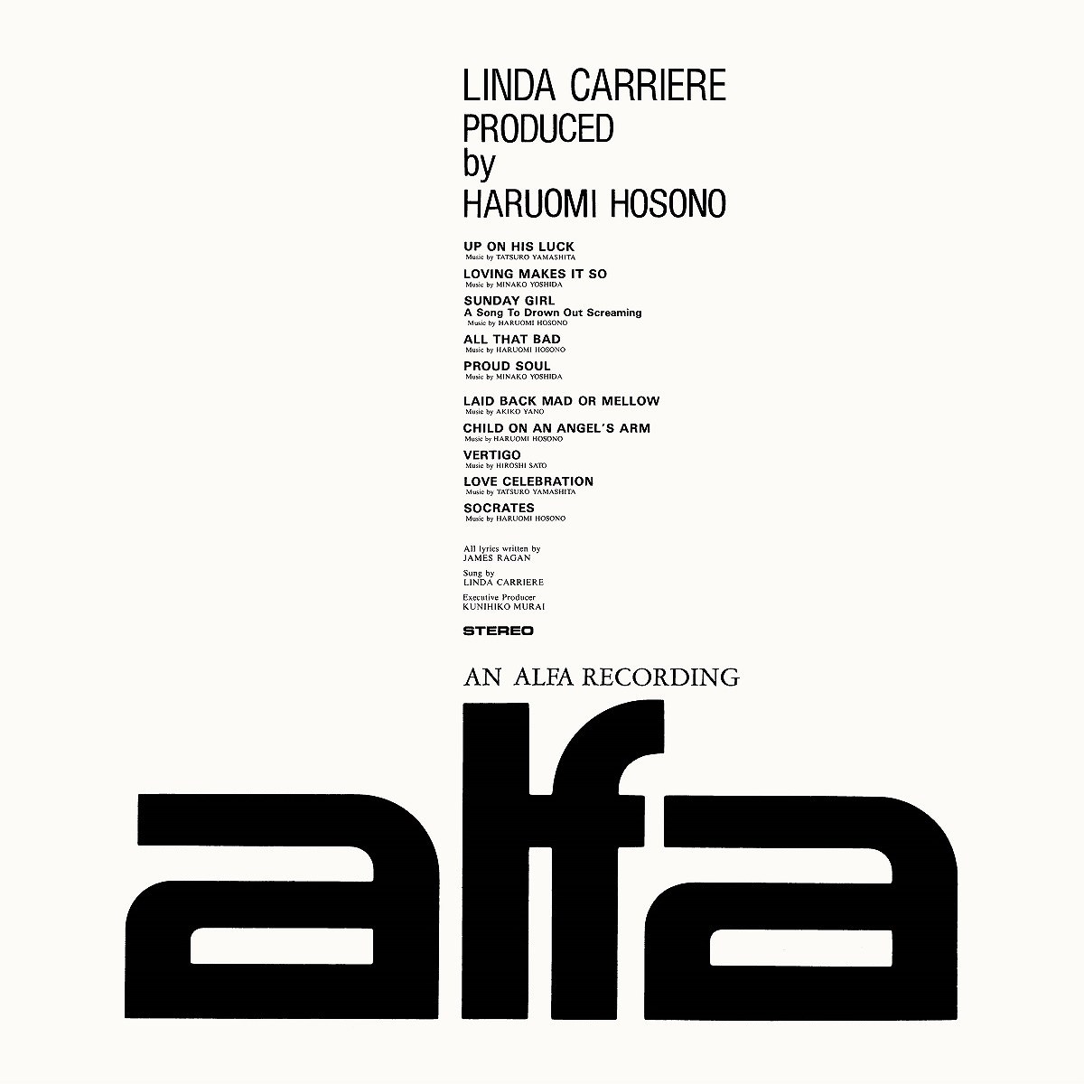 Songwriting credits on the album include Japanese artists Tatsuro Yamashita, Akiko Yano, Minako Yoshida and Hiroshi Sato, who all went on to become big names. Poet and author James Ragan wrote the songs’ lyrics.