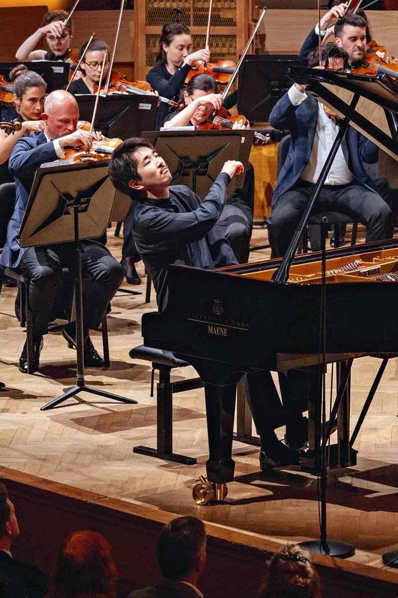 Wataru Hisasue plays the piano and accompany the orchestra at a competition in Brussels on Saturday.