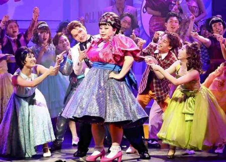 Watanabe, center, plays Tracy in “Hairspray” in Tokyo in September.