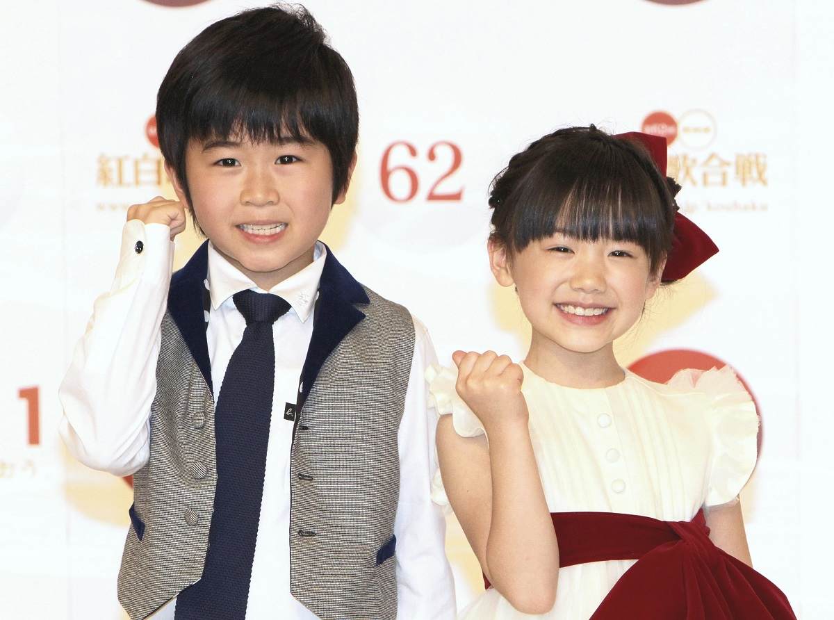 Fuku Suzuki and Mana Ashida take part in NHK’s “Kohaku Utagassen” (Red & White Year-end Song Festival) in 2011.