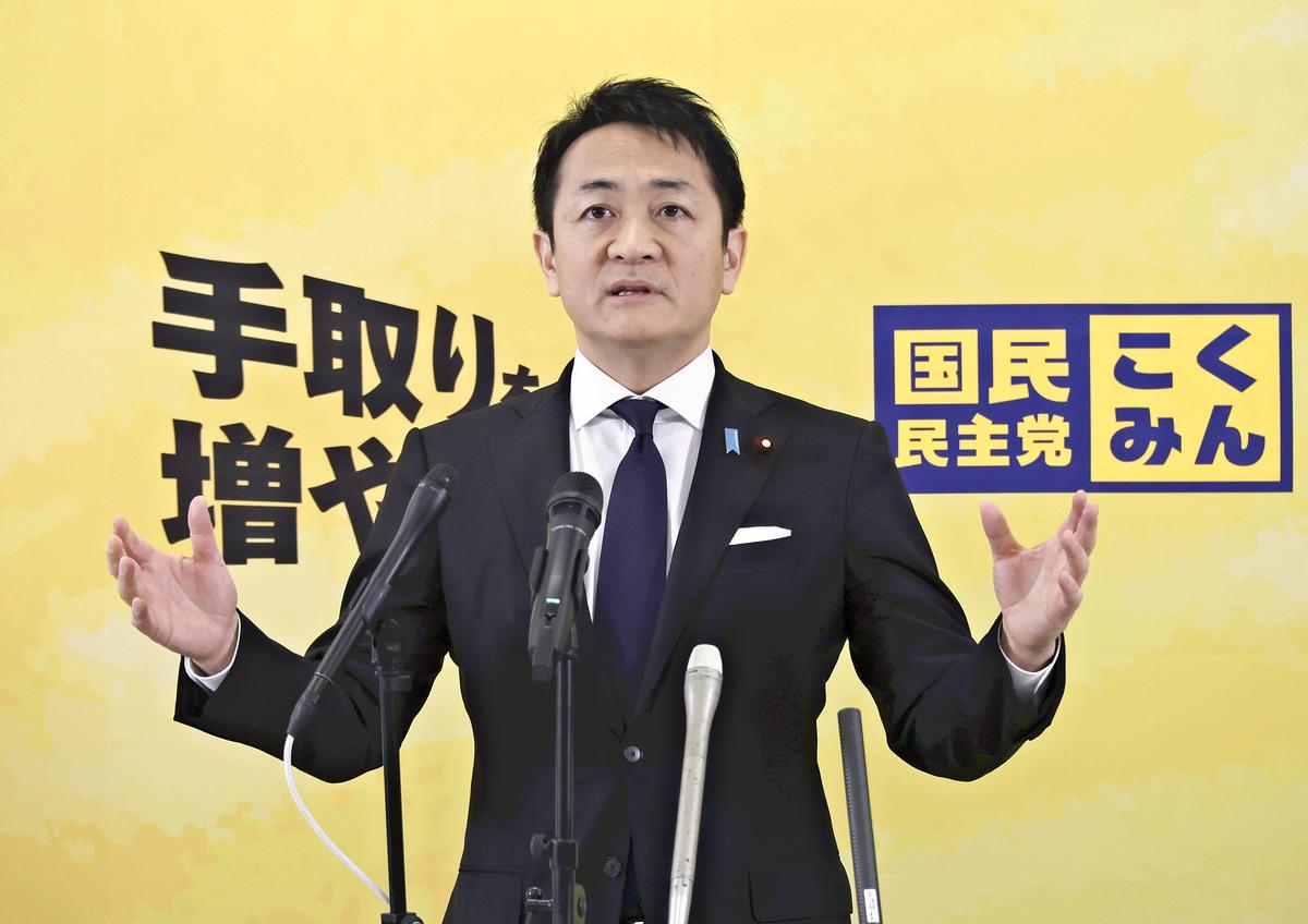 Democratic Party for the People leader Yuichiro Tamaki holds a press conference on Mar. 25 at the Diet.
