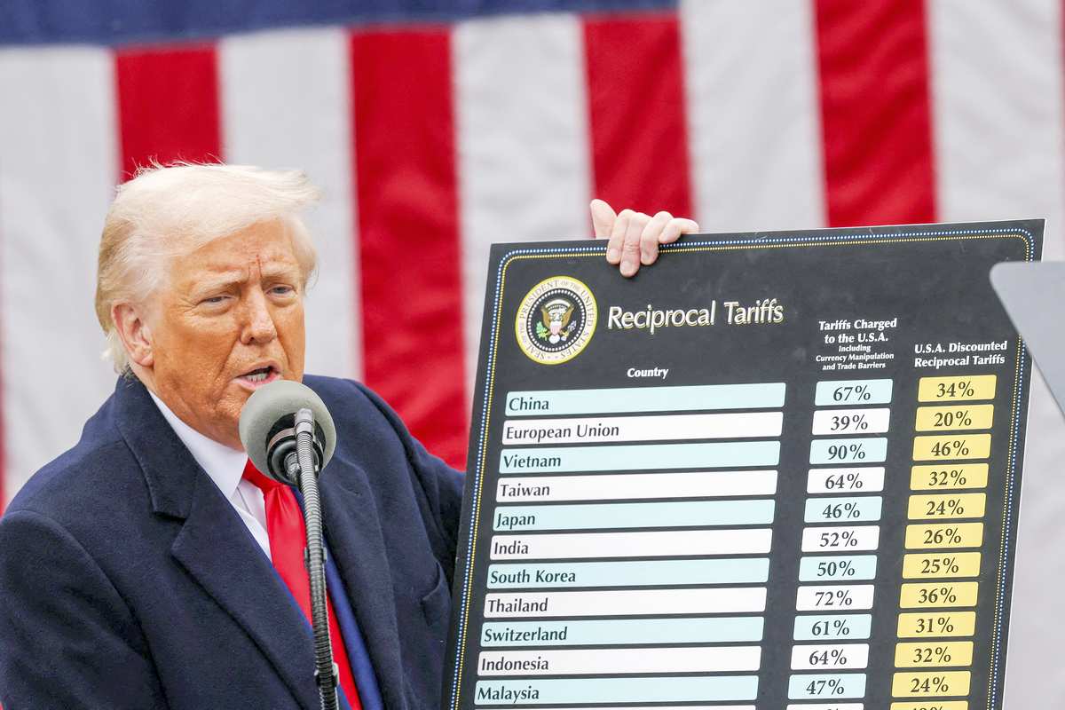 U.S. President Donald Trump delivers remarks on tariffs in the Rose Garden at the White House in Washington on April 2.