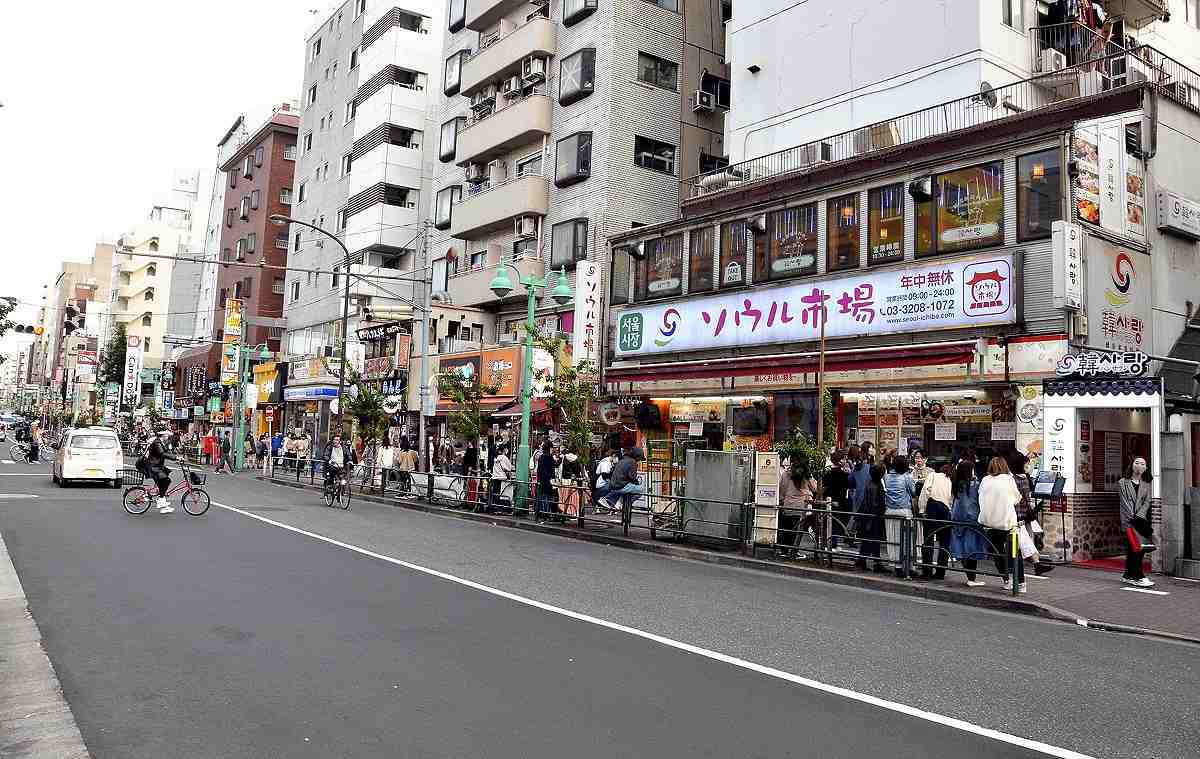 Okubo-dori avenue in Shinjuku Ward, Tokyo, is home to the popular Seoul Ichiba food shop and South Korean restaurants.