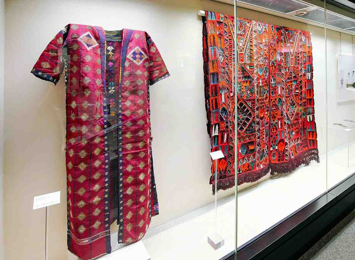 A Syrian garment and an Iraqi rug are on display.