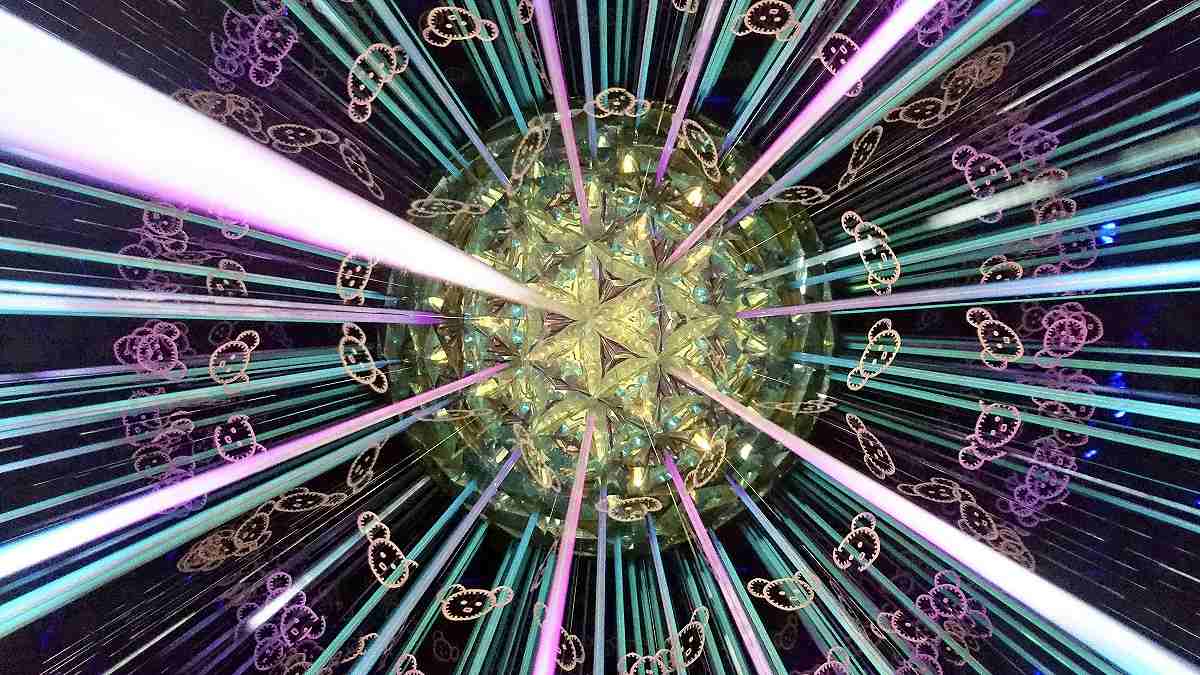 Inside a kaleidoscope the museum commissioned from an artist. Bears feature among the patterns radially extending inside the tube.