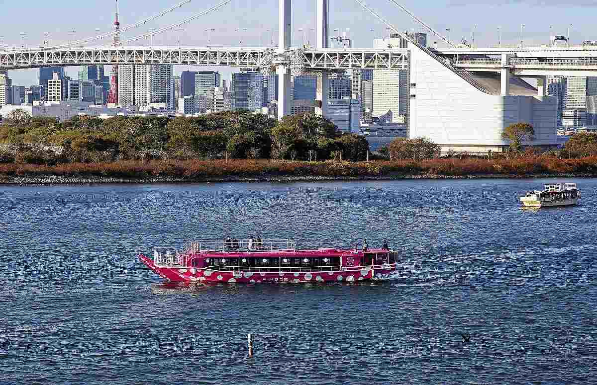 The Azuma yakatabune boat sails off the Odaiba Marine Park in Minato Ward, Tokyo.