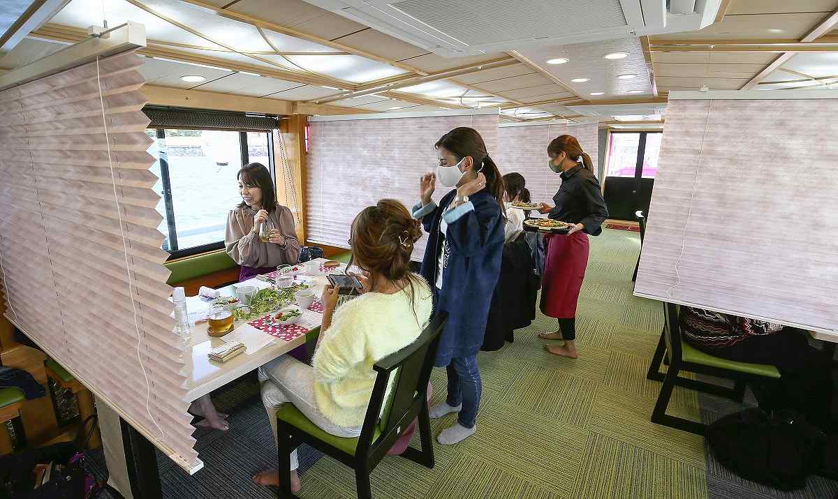 “Yakatabune boats are said to have gotten their start during the Heian era [794-1192] as a form of recreation for women who served the Imperial court,” said Namiko Takahashi, Amitatsu’s proprietress. “This is a concept that was conceived long before the coronavirus crisis and we wanted to return to yakatabune’s roots and have people outside of our conventional clientele ride with us. We took on this new challenge thinking that now was the best time.”