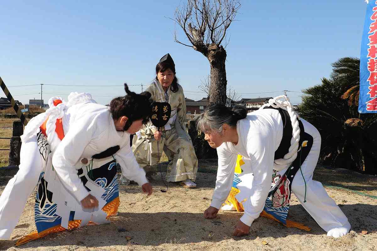According to the Yatsushiro city government, the origin of the event is said to be a reclamation project at the end of the Edo period (1603-1867), where ritual sumo wrestlers were gathered from the surrounding villages to complete the project. In the district, women have somehow become the performers of the ritual.