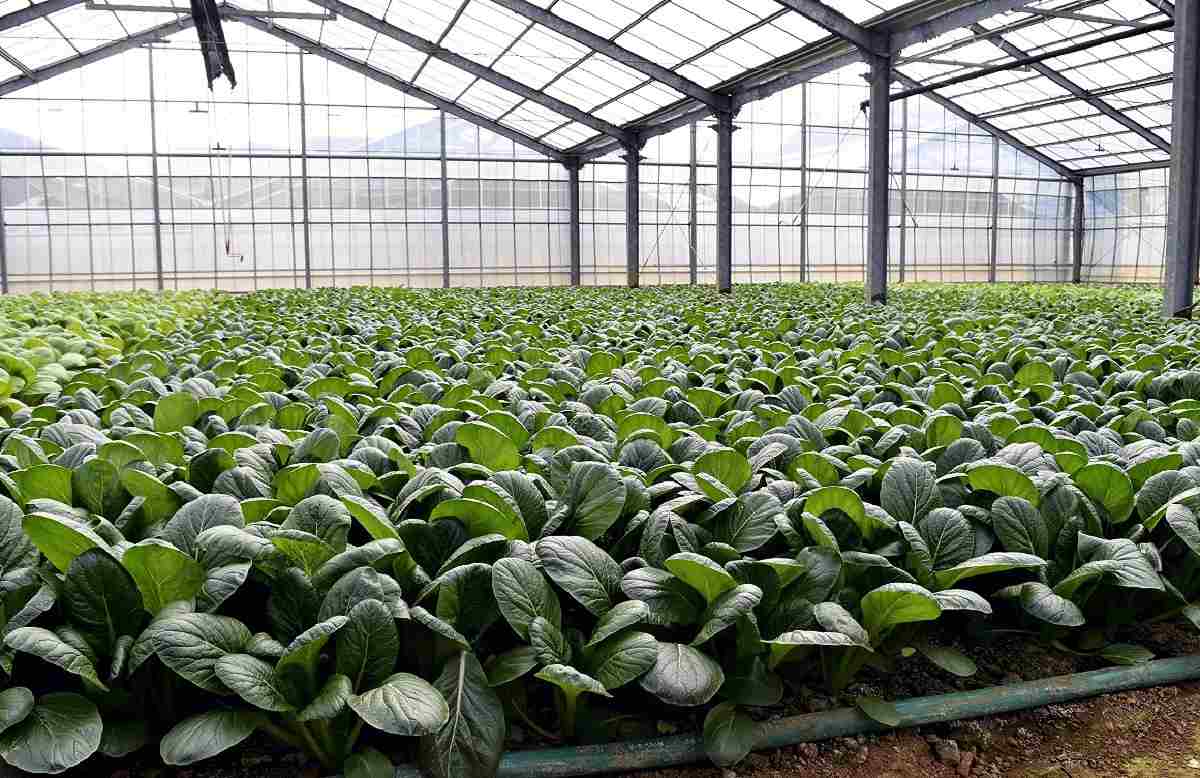 Komatsuna in an Ishikawa Noen greenhouse during the harvest season