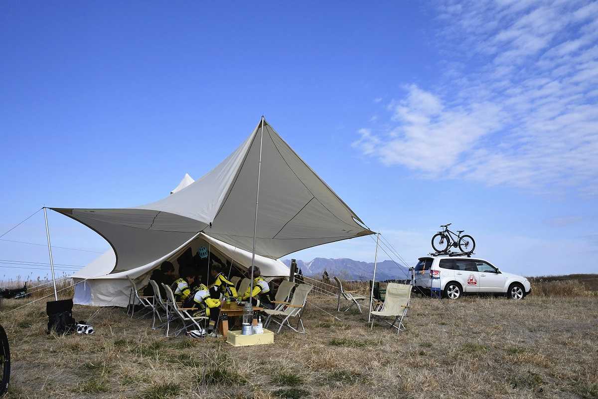Last December, a dozen cyclists clad in yellow and black uniforms could be spotted buzzing around the open terrain in Machikoga, Aso City on mountain bikes. They were members of Nasu Blasen, a professional cycling team from Tochigi Prefecture that joined the tour as part of their training regimen. “The electric assist on the tour bikes makes it easy to ride up these hills. And the scenery’s great, too,” said Shotaro Watanabe, a 26-year-old in his second year with the team.