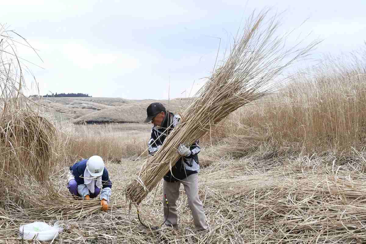 In 2019, 3,500 bundles were shipped to Kyoto to demonstrate the concept. Aso grasses were highly prized in Kyoto for their thinness and strength.