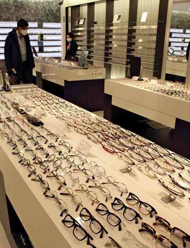 Many spectacles, including the latest models, are on display and for sale at Megane Kaikan, a facility that houses an eyeglasses shop and an eyeglasses museum, in Sabae.