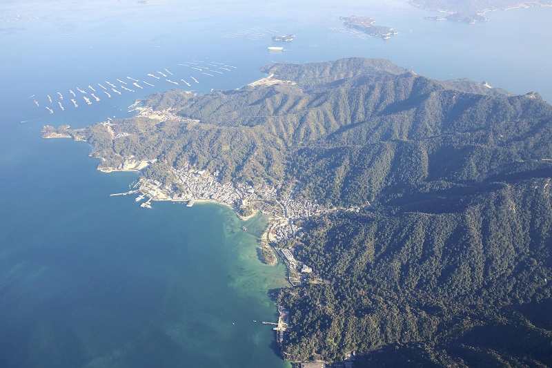 The virgin forests of Mt. Misen are seen from a Yomiuri Shimbun helicopter on the Miyajima island.