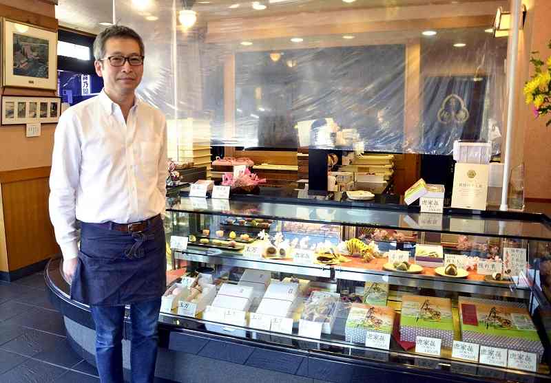 Gyokueido proprietor Yasuto Imae stands in his Japanese-style confectionery store in Nihombashi-Ningyocho in Chuo Ward, Tokyo, on Feb. 19. The shop sells amazake using a recipe it inherited from Owariya.