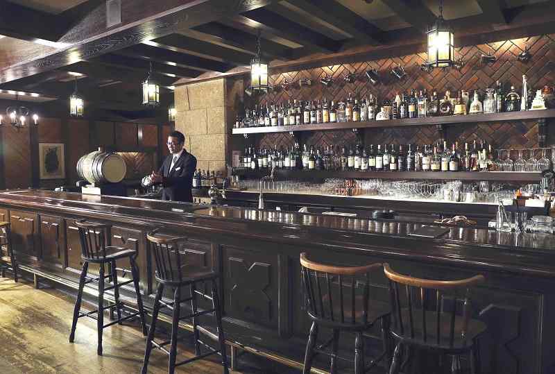 A staff member stands at the counter of the Leach Bar at Rihga Royal Hotel in Kita Ward, Osaka. The interior and furnishings are still the same as they were when the bar first opened.