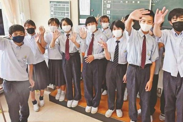 Students wear genderless uniforms at Okayama-chuo Junior High School in Okayama City.