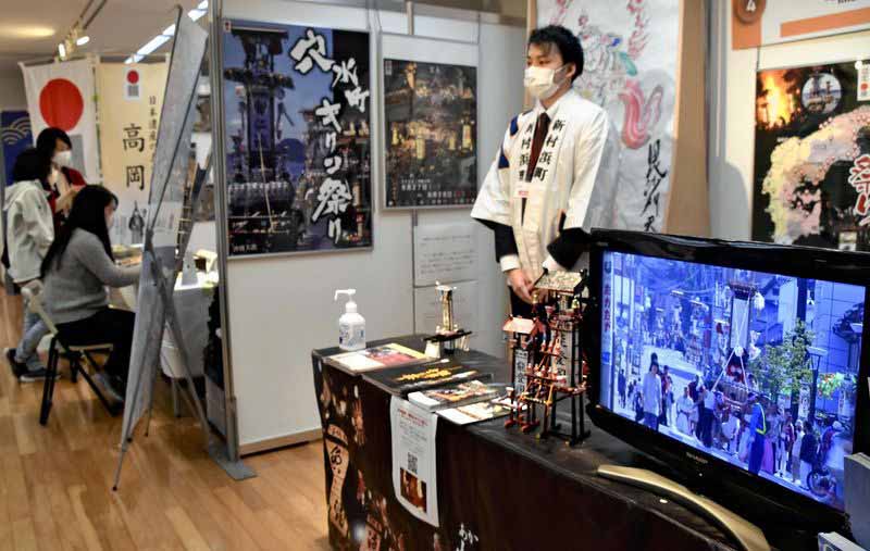 A booth introducing the Noto Kiriko festival at the Komatu Urara theater in Komatsu, Ishikawa Prefecture