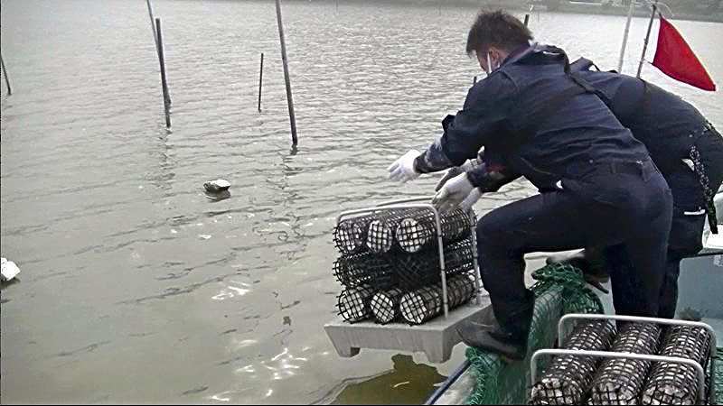 Thus, the prefectural government started in 2018 to set up artificial reefs — tubes stuffed with oyster and scallop shells — in the lake on an experimental basis. It is hoped that oriental river prawns will increase their numbers as the reefs are expected to help them avoid predation and secure spawning grounds.
