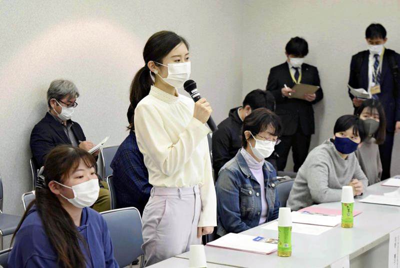 A member of Maihime Shachu expresses her enthusiasm for the group being established, in Hamada, Shimane Prefecture, in April 2021.
