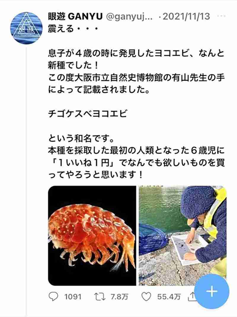MATSUE — A father who took to Twitter to boast about his son’s discovery of a new species of shrimp is now ¥462,000 out of pocket. Nevertheless, the proud pop is still smiling.