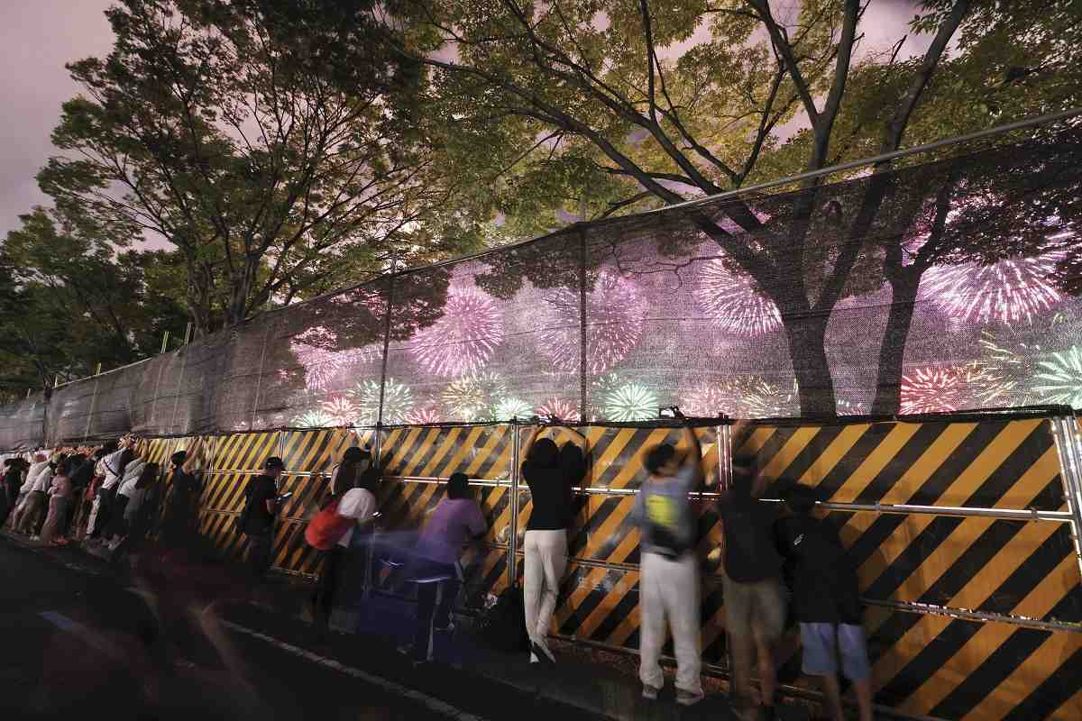 Many people, however, wanted to see the Aug. 8 fireworks. When the show began at 7:30 p.m., many pressed up against the fence and used their smartphones to take photos of the fireworks through gaps in the fence.