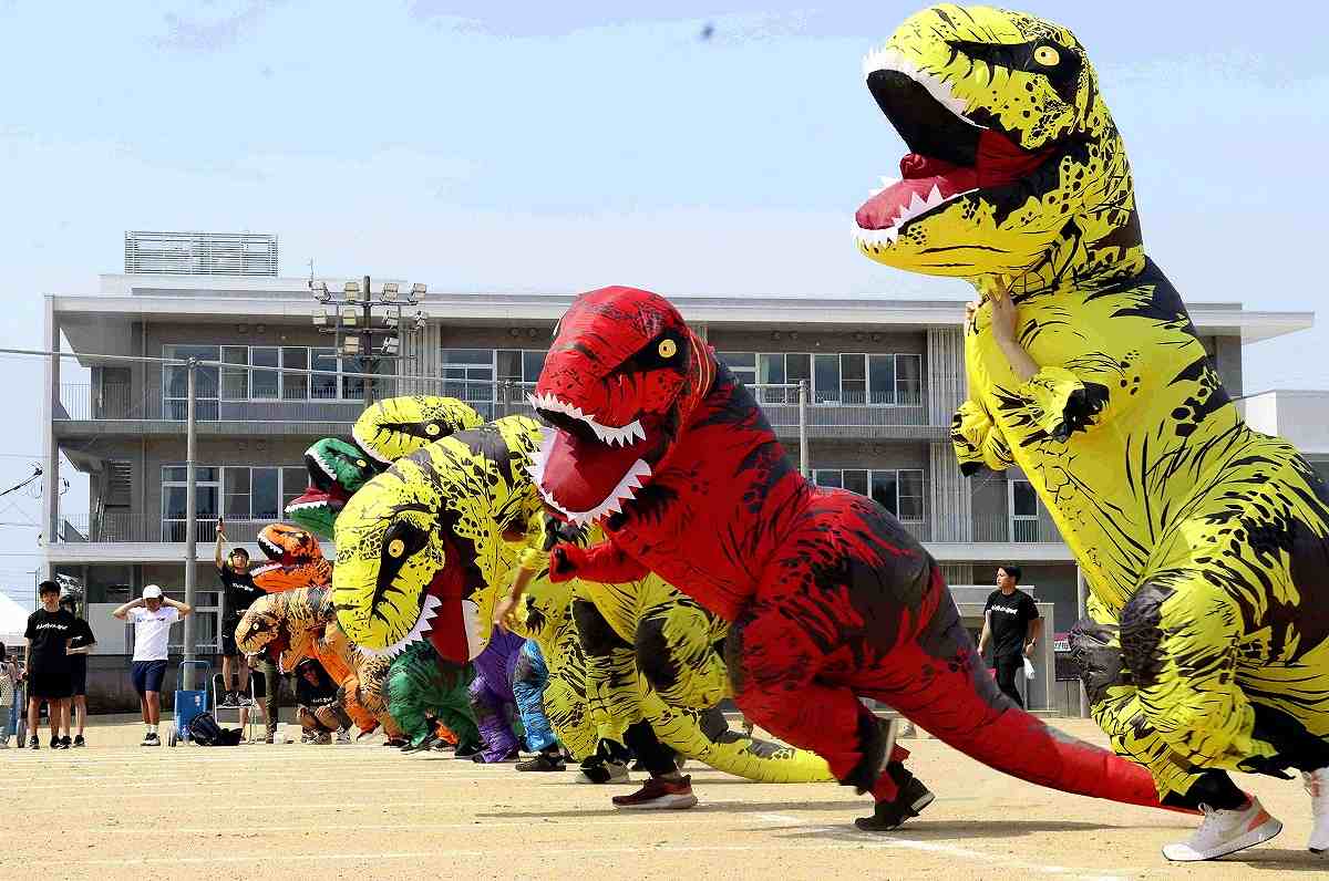 The T-Rex race was the main event of the festival on June 8 in city’s Oyama district, known as the town of dinosaurs. The venue, Oyama Sogo Ground, was bustling with participants and hosted many food stalls.